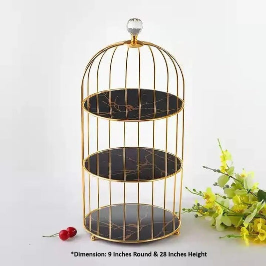 Gold 3-Tier Hanging Bird Cage Stand Cupcake & Dessert Display by Araish Khana